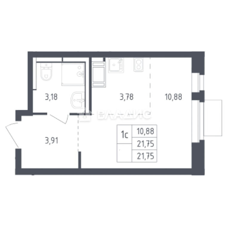 Общая: 21,8 м2